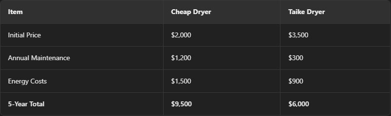 ❌การควบคุมความชื้นที่ไม่ดี: ความเสี่ยงของผลิตภัณฑ์และความเสียหายของอุปกรณ์ทำไมเครื่องอบผ้าของ Taike จะประหยัดเงินเมื่อเวลาผ่านไป